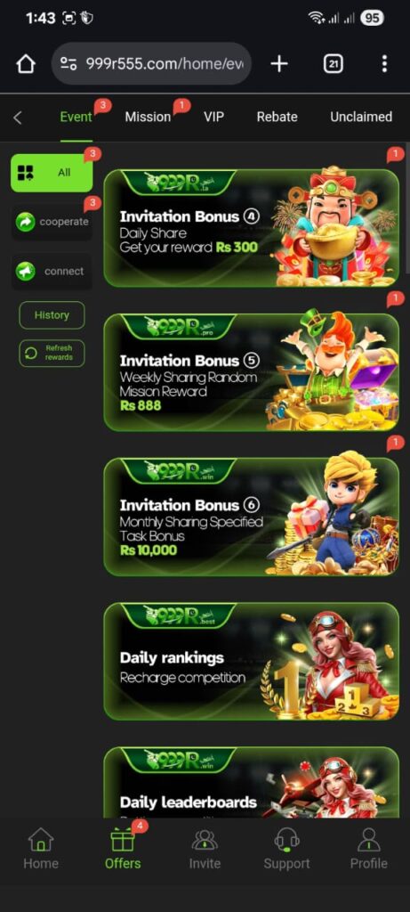 There’s also a referral system that lets you invite friends and earn a percentage of their deposits or wins. You’ll receive daily bonuses for playing regularly and additional event-based offers that appear during special occasions.